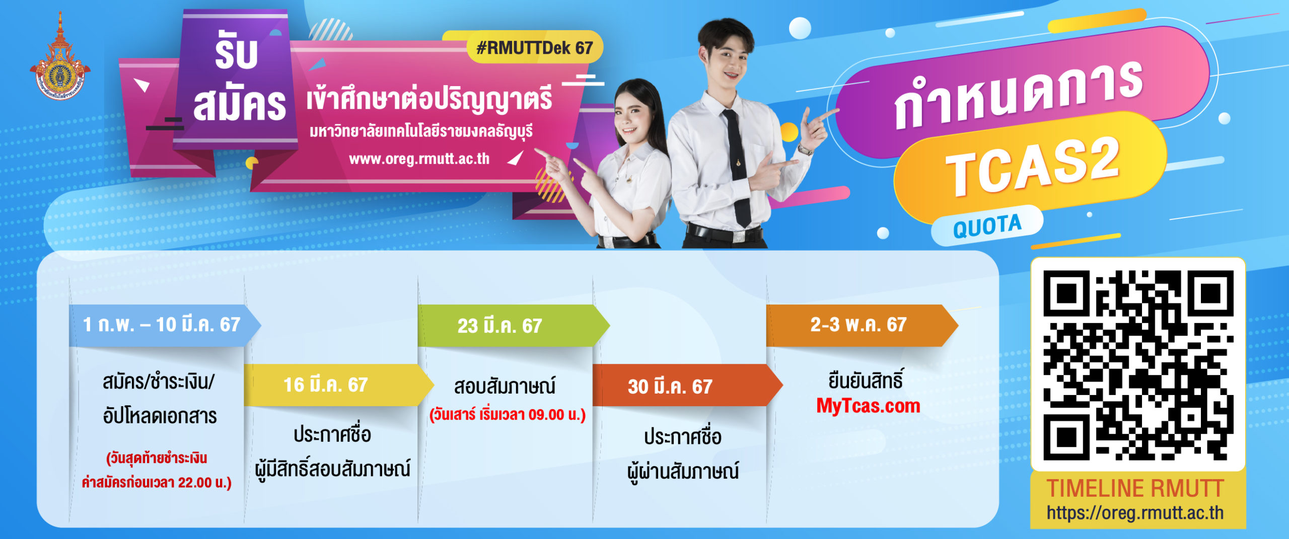 – ตรวจสอบคุณสมบัติให้ตรงตามสาขาวิชาที่ต้องการสมัคร ที่ www.oreg.rmutt.ac.th หรือ Sutdent.mytcas.com
